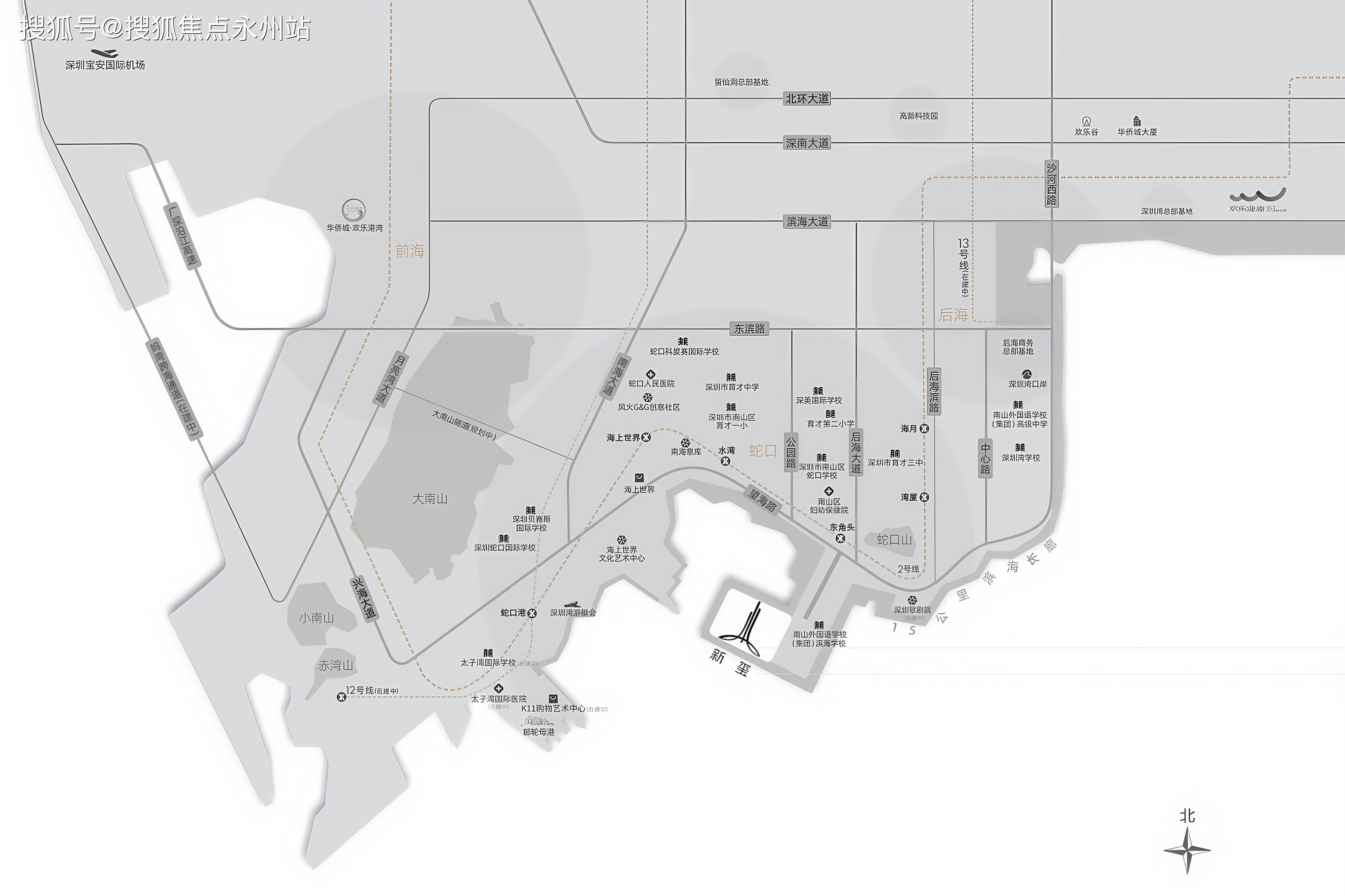 项目地处前海蛇口自贸区,毗邻香港,拥有得天独厚的地理位置,周边交通网络发达,通过望海路、南海大道、后海大道等城市干道及地铁2号线东角头站,与周边区域建立便捷的联系。