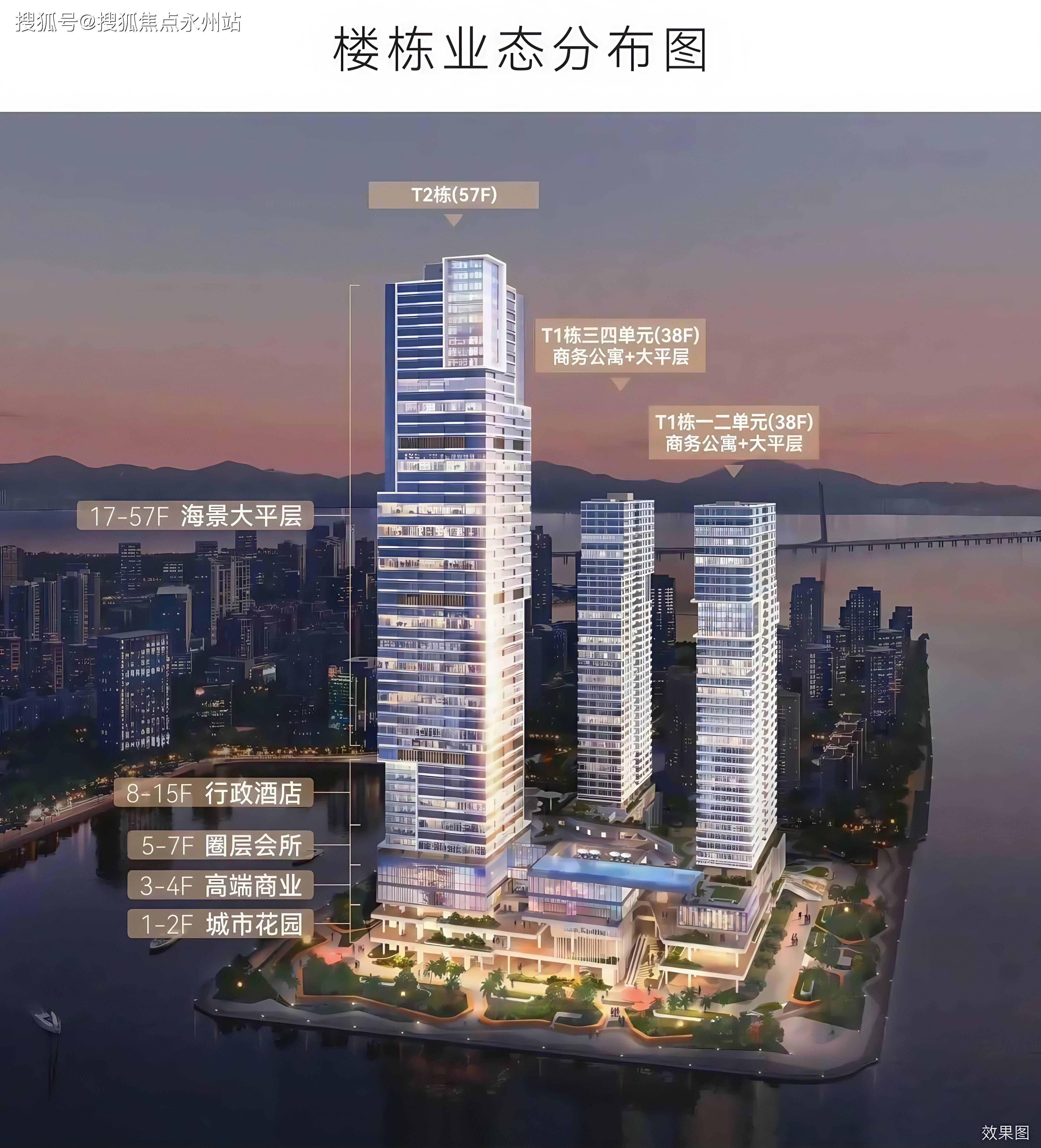 高区楼王:33-38 层为三梯一户设计,如 400㎡四房三厅五卫、700㎡六房三厅七卫,仅6席,南向超大三厅一体,尊享极致海景。