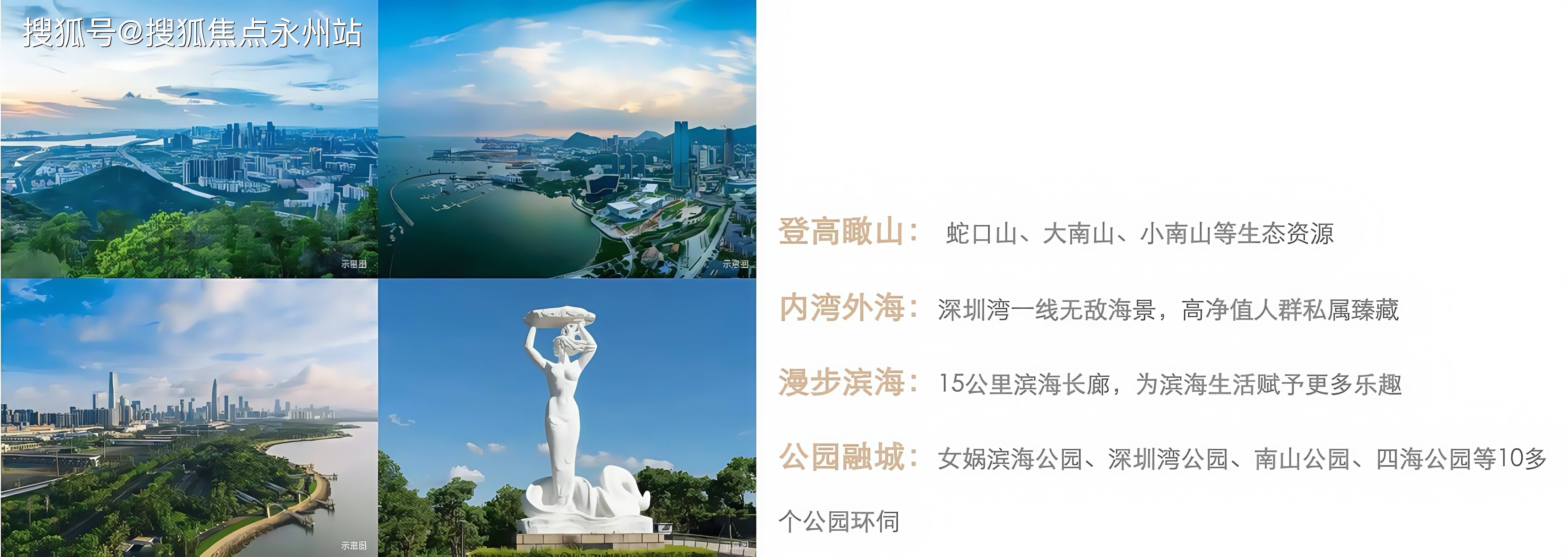 半岛生态格局:接驳 15 公里滨海长廊,步行可达深圳湾公园,小南山公园提供山地休闲体验,形成山海城湾四维景观体系。