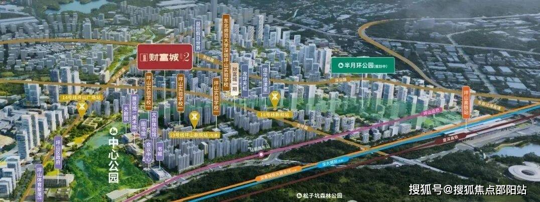 家门口三地铁环绕:14/16/19号线(在建),坪山广场站、新和站、坪山剧院站(在建)三站环绕,快线站直达岗厦北,便捷换乘畅达各区核心;