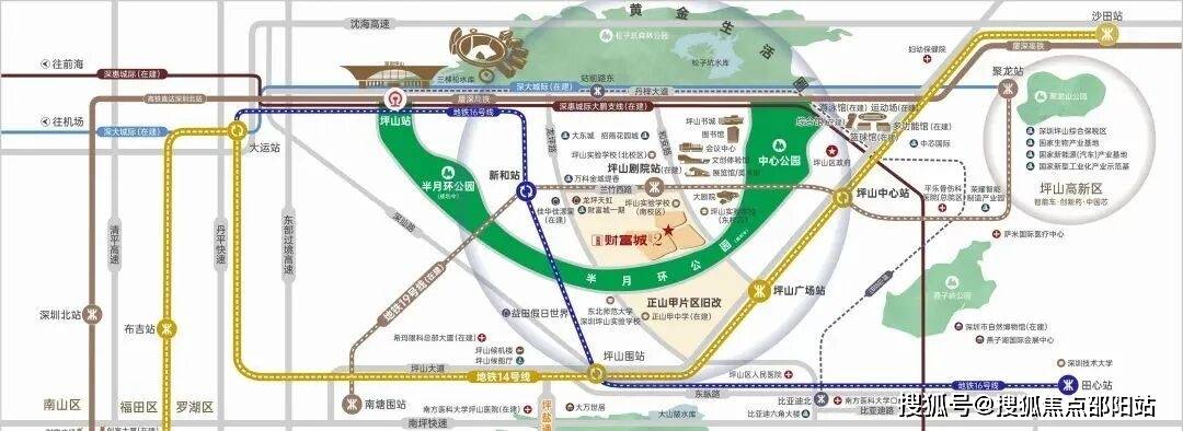 高/快速交通路网:坪山大道、南坪快速、盐坪通道、沈海高速、东部过境高速、外环高速极速通达湾区;