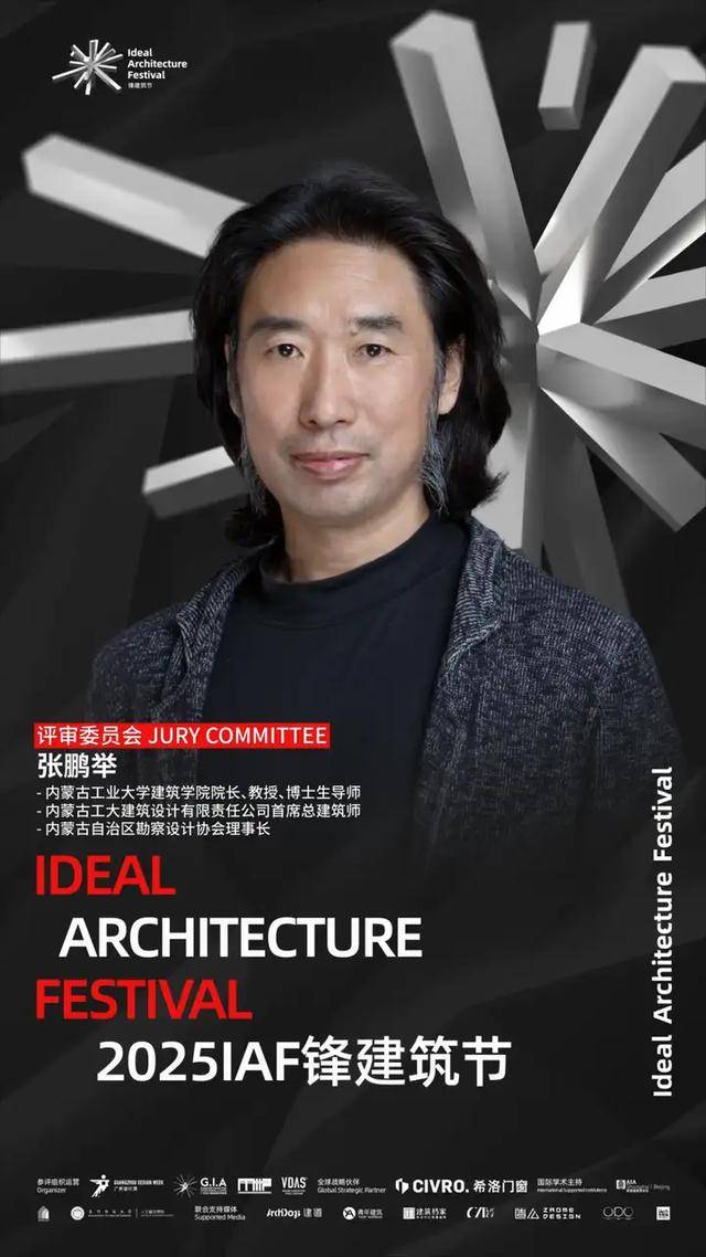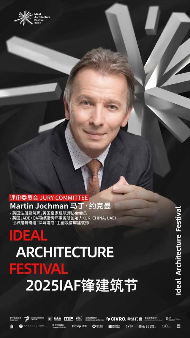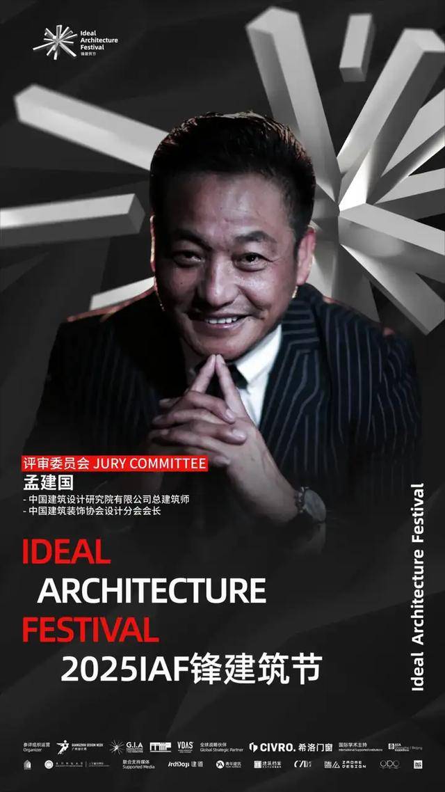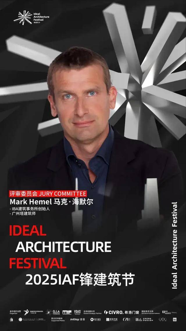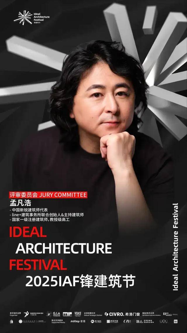 2025 IAF锋建筑节评审委员会正式揭晓!他们分别是:八旬建筑设计工作室创办人八旬先生、国际建筑风水协会秘书长陈春文先生、国际Active House顾问董事会董事郭成林先生、Gensler副总裁和设计总监Hasan Syed先生、源计划建筑师事务所创始合伙人何健翔先生、矶崎新+胡倩工作室联合创始人胡倩女士、dEEP建筑事务所创始人李道德先生、OPEN建筑事务所创始合伙人李虎先生、中信设计首席总建筑师陆晓明先生、IBA建筑事务所创始人Mark Hemel先生、JADE+QA建筑师事务所创始人Martin Jochman先生、KDI 纽约康威设计事务所创始人马康威先生、line+建筑事务所联合创始人&主持建筑师孟凡浩先生、中国建筑设计研究院有限公司总建筑师孟建国先生、GVL怡境国际集团董事长彭涛先生、汉森伯盛国际设计集团董事长、首席总建筑师盛宇宏先生、当代艺术家/乌鸦行为创始人武宁亚先生、时代中国设计研发中心总经理向杰先生、中国建筑五局总建筑师兼设计研究总院院长杨瑛先生、内蒙古工业大学建筑学院院长、教授、博士生导师张鹏举先生、PLAT ASIA联合创始人/总裁/主持建筑师郑东贤先生、东南大学建筑学院教授、博士生导师周琦先生、山水秀建筑事务所创始人/主持建筑师祝晓峰先生、BUZZ建筑事务所创始人/主持建筑师庄子玉先生。(评委顺序按照姓名首字母排列)
